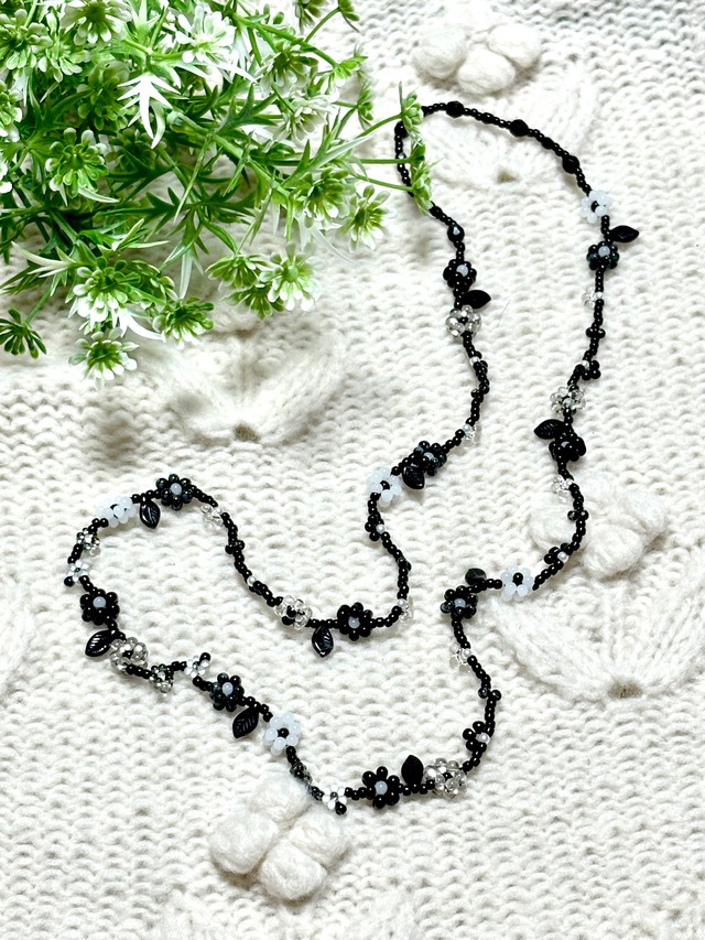 【ビーズステッチキット】bloom黒《デージーチェーンのロングネックレス》amu+塩川千映子