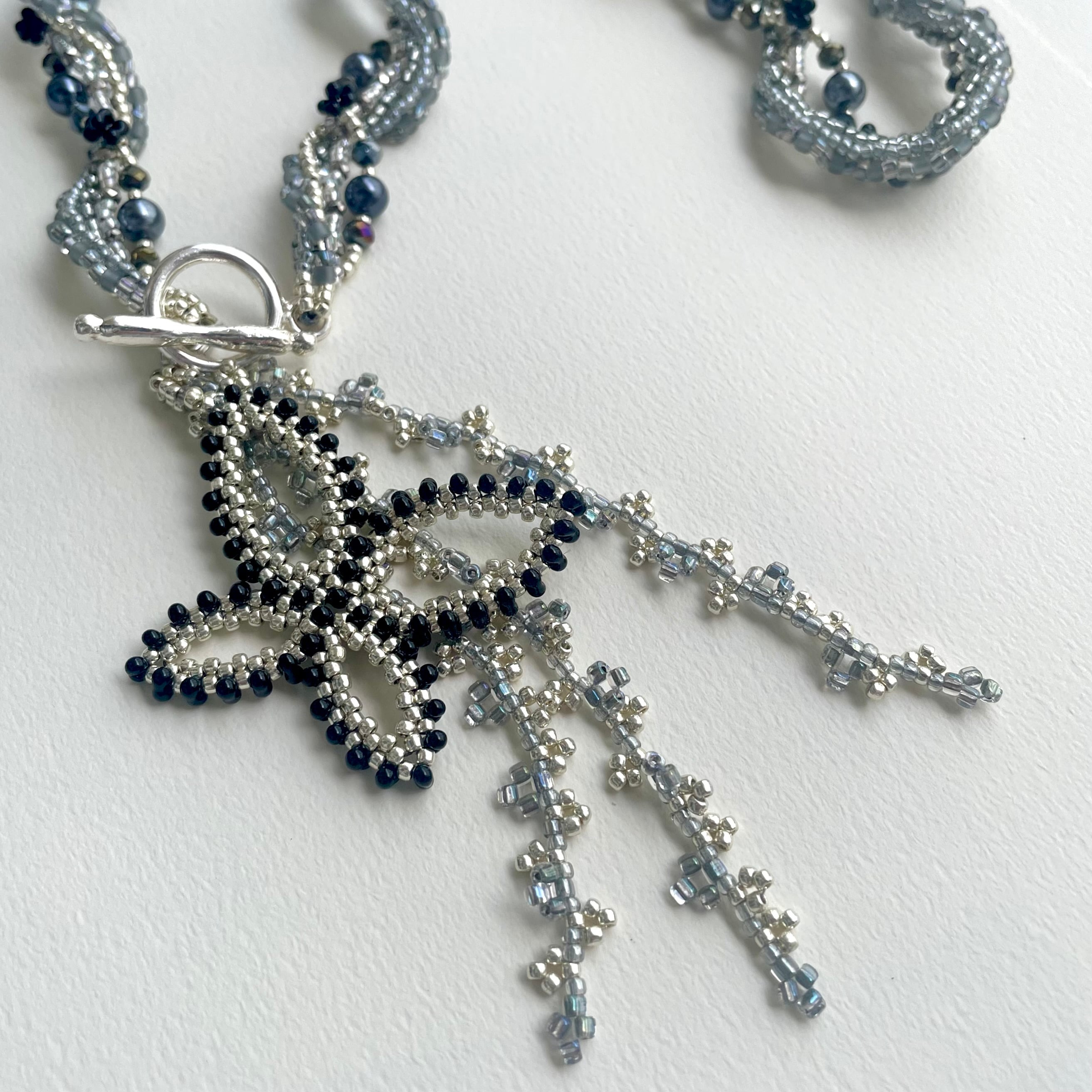 素材:シードビーズ、ガラスビーズ、ガラスパール、メタルマンテル