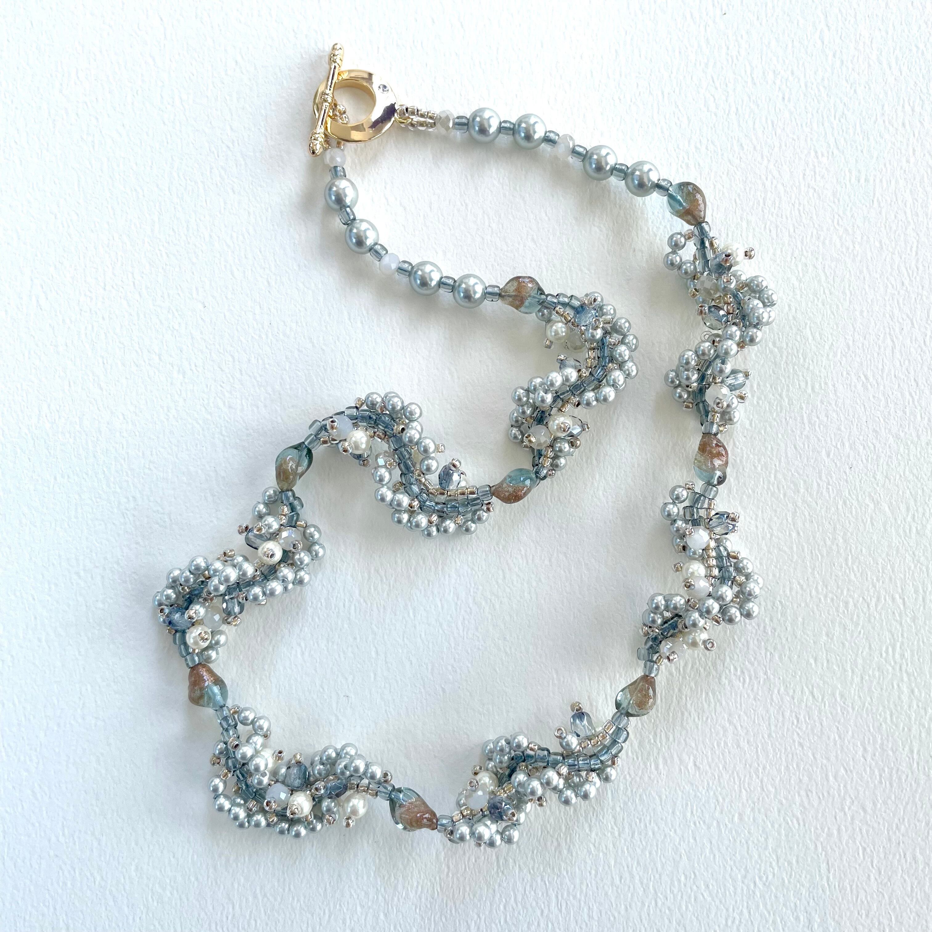 華やかなパールのモチーフの間にベネチアンビーズを添えたエレガントなショートネックレスです。落ち着いたカラーのビーズは、どんなスタイルにもマッチし、季節を問わずおしゃれを楽しむことができます。シンプルでありながらも存在感のある仕上がり♪