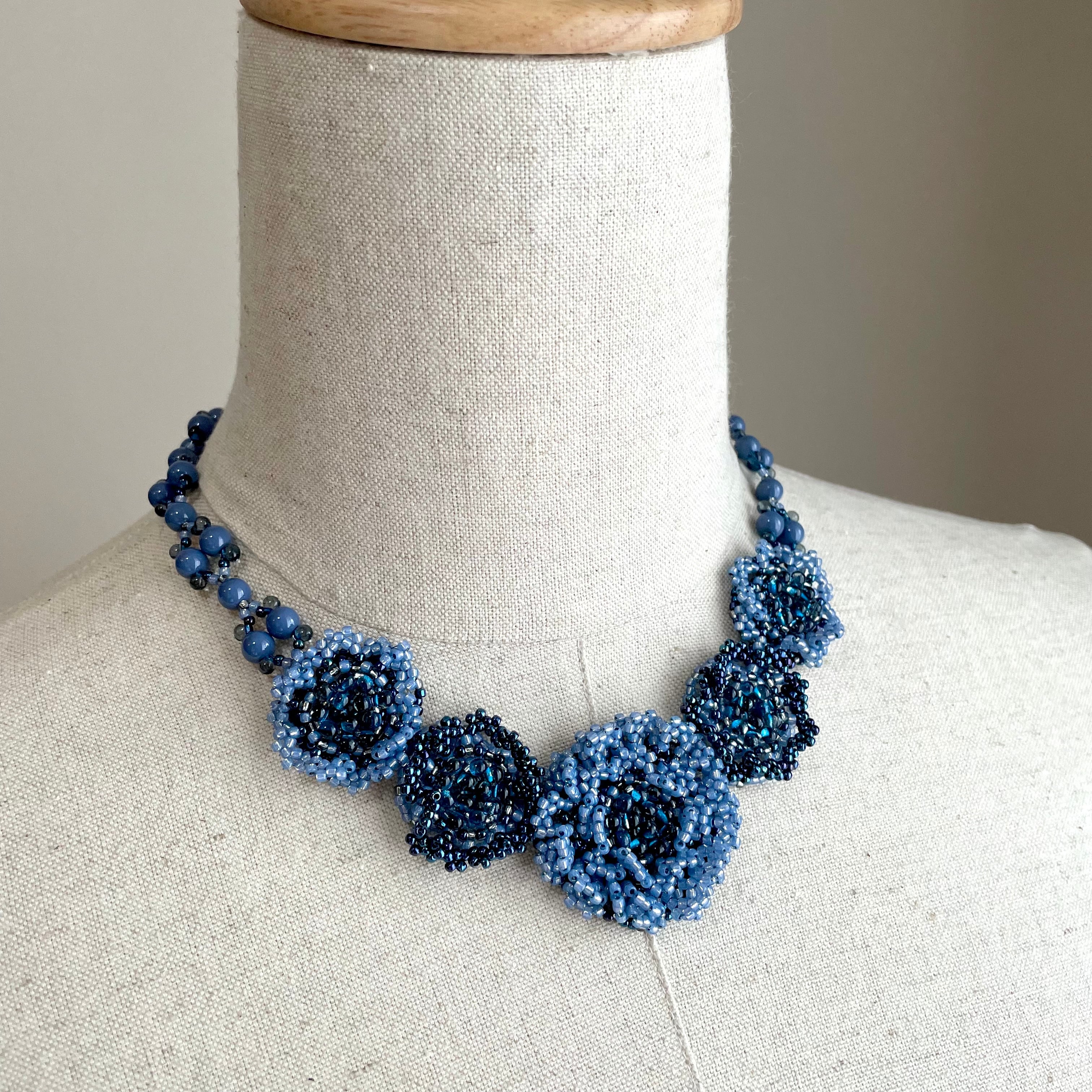 大ぶりなお花モチーフが印象的なショートネックレスです。可愛らしいお花がお顔まわりを華やかにします。カジュアルな服装にも合わせやすいのでぜひデイリーに着けていただきたい作品です。