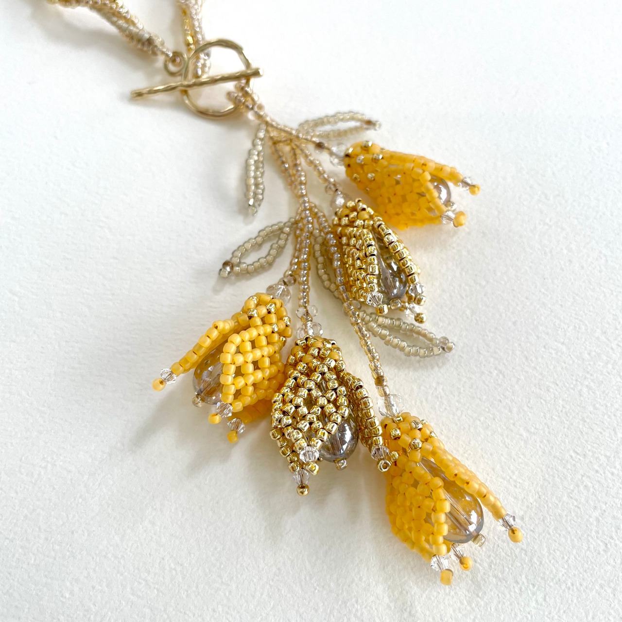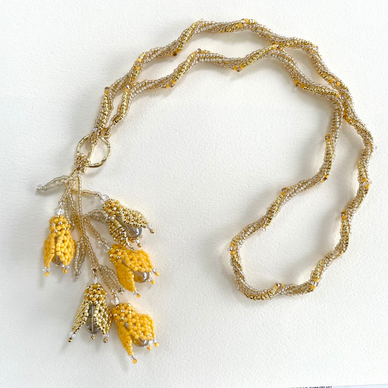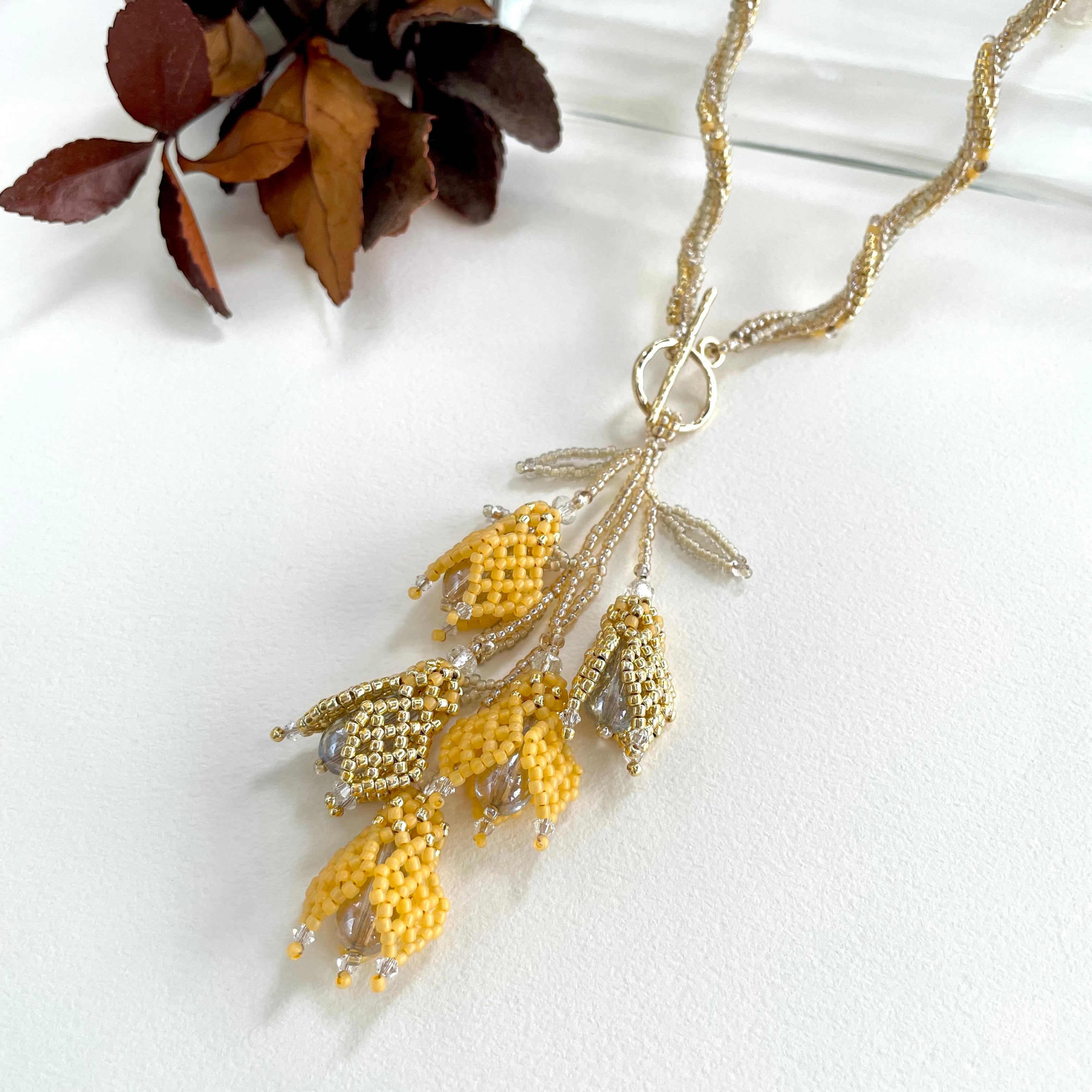 素材:シードビーズ、ガラスビーズ、メタルマンテル