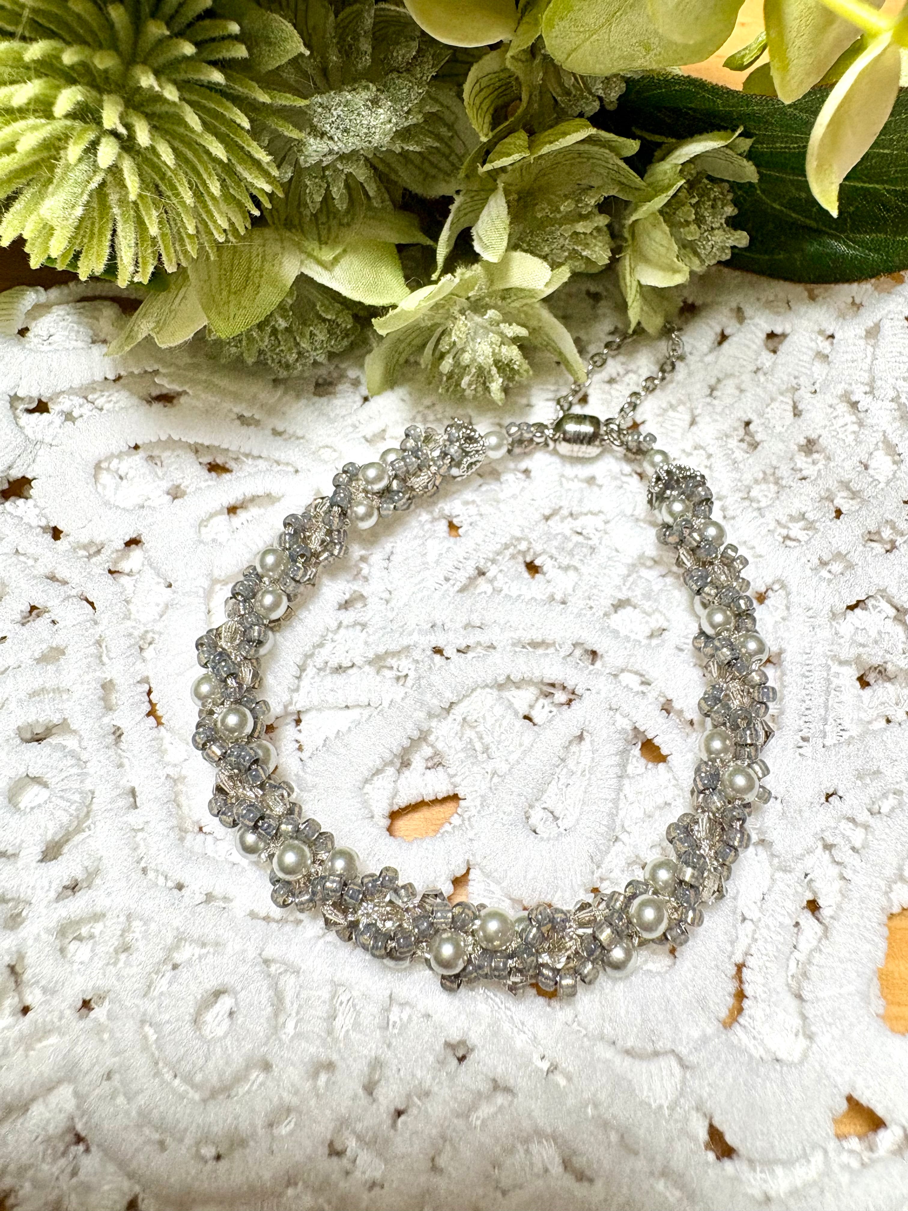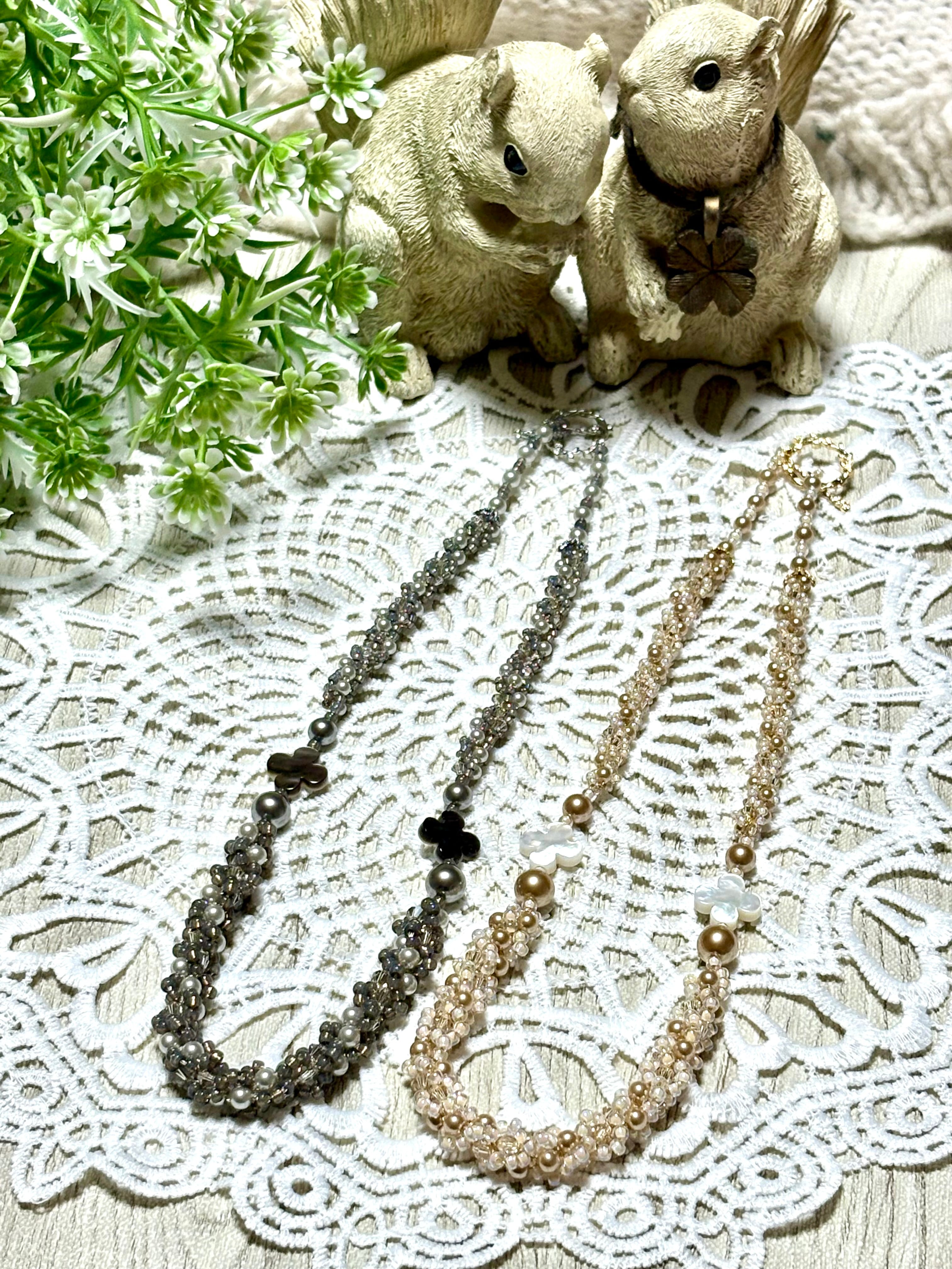 素材:ガラスビーズ・シードビーズ・レース糸