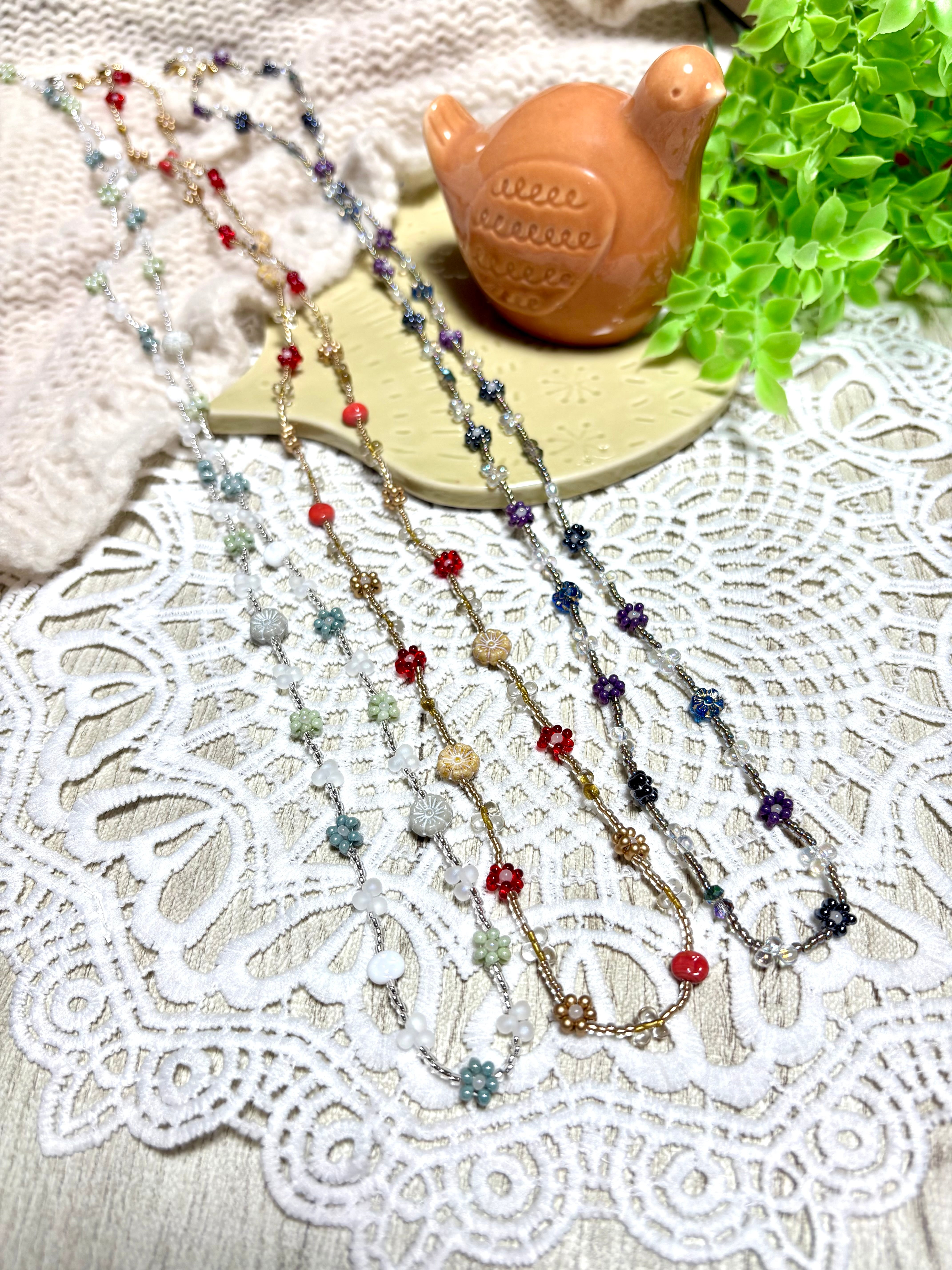 素材:シードビーズ・ガラスビーズ・パール・金属留め具(カニカン)・メガネ留