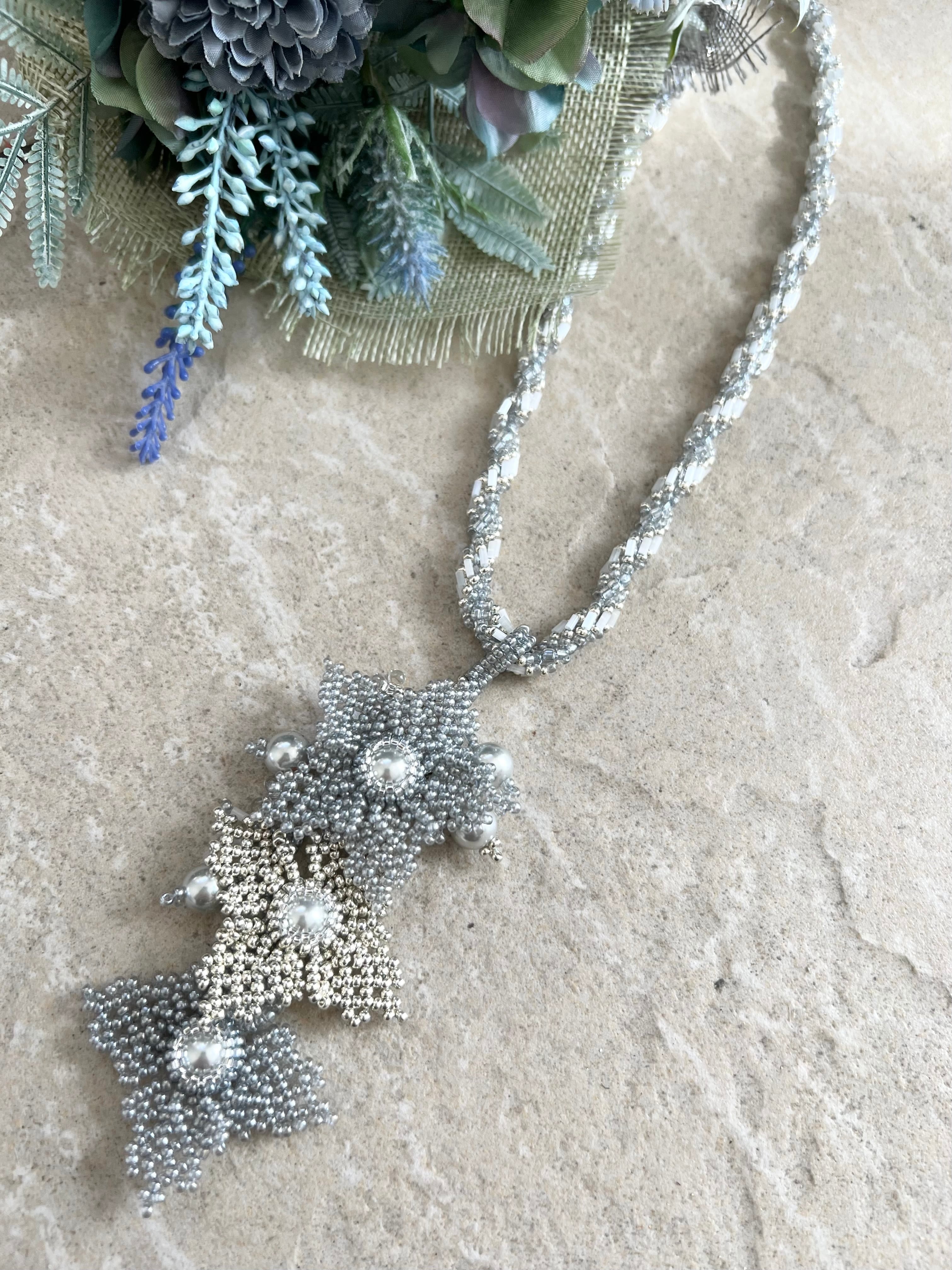 エレガントなフラワーモチーフが印象的なビーズアクセサリーキットです。グレー系のカラーを中心に、上品さを兼ね備えたデザインが魅力です。手作りの楽しさを存分に味わえます!