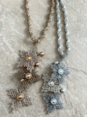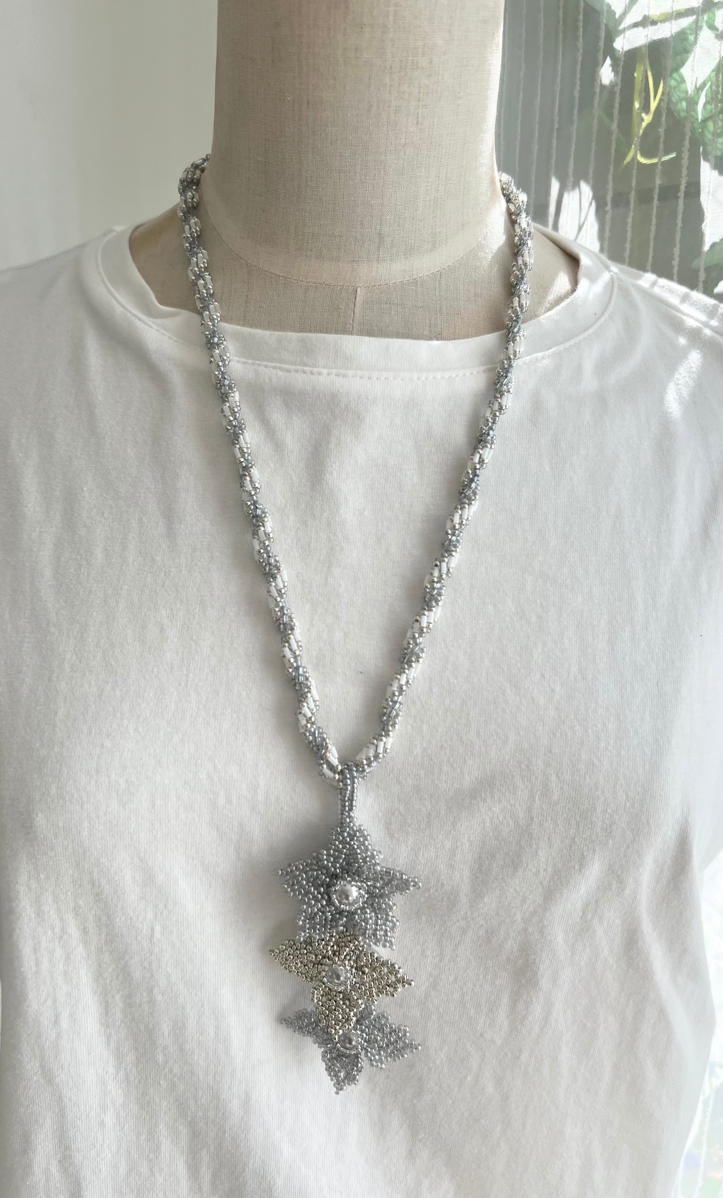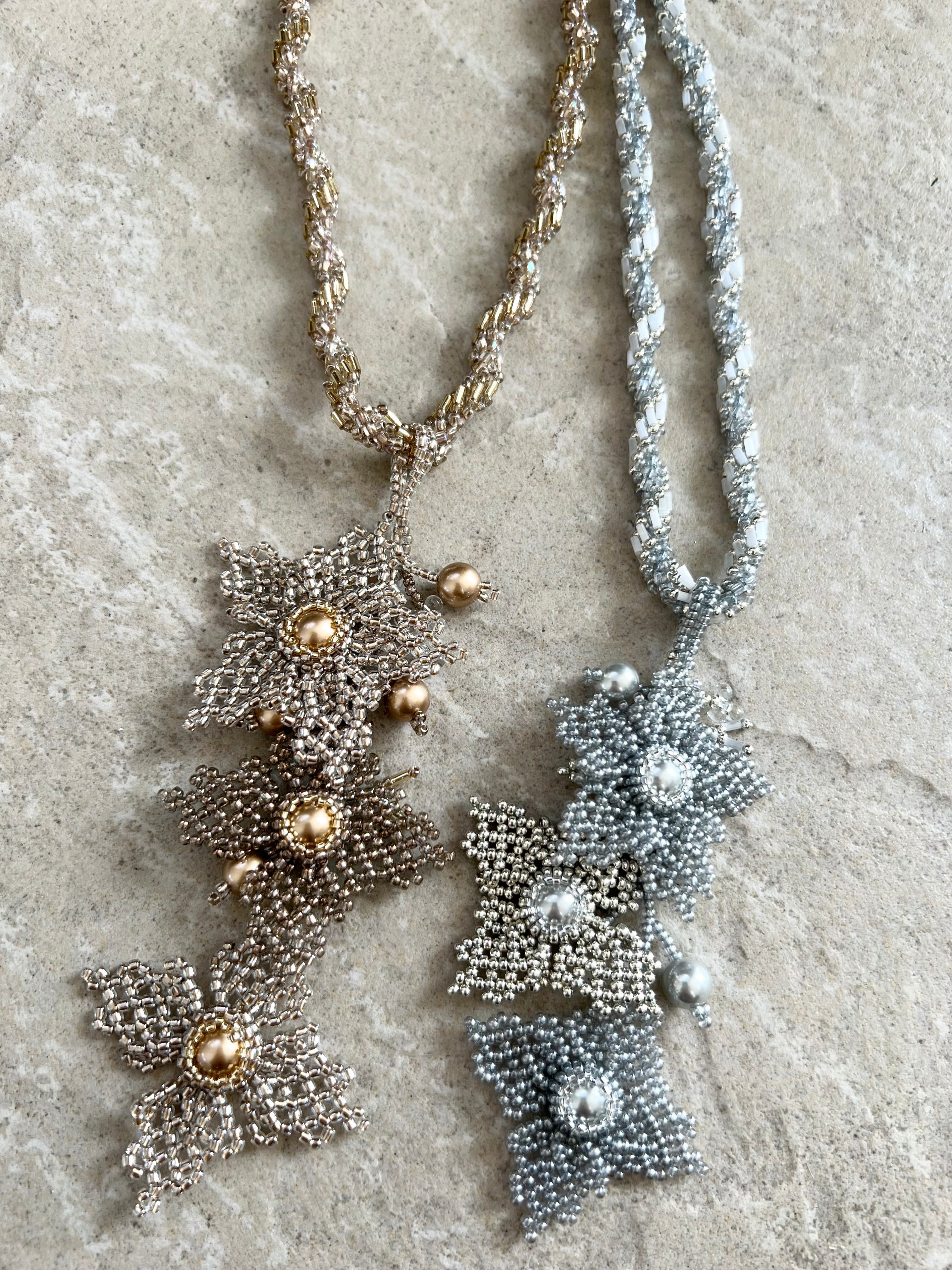 素材:シードビーズ、ガラスビーズ、パール、マンテルなど。
