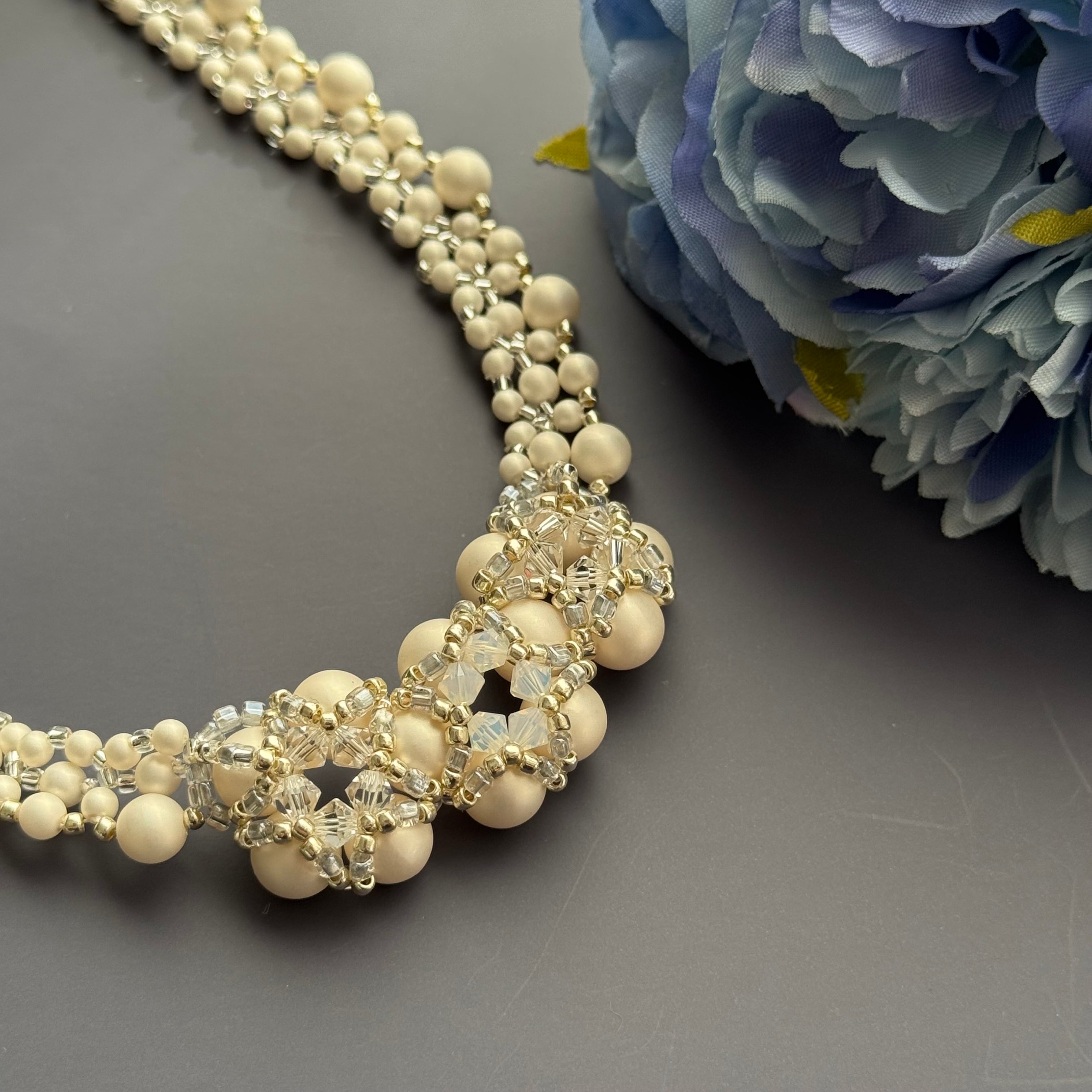 #ビーズステッチ #ハンドメイドアクセサリー #ビーズアクセサリー #キット #リアン #ネックレス #パール #ショートネックレス #おでかけ