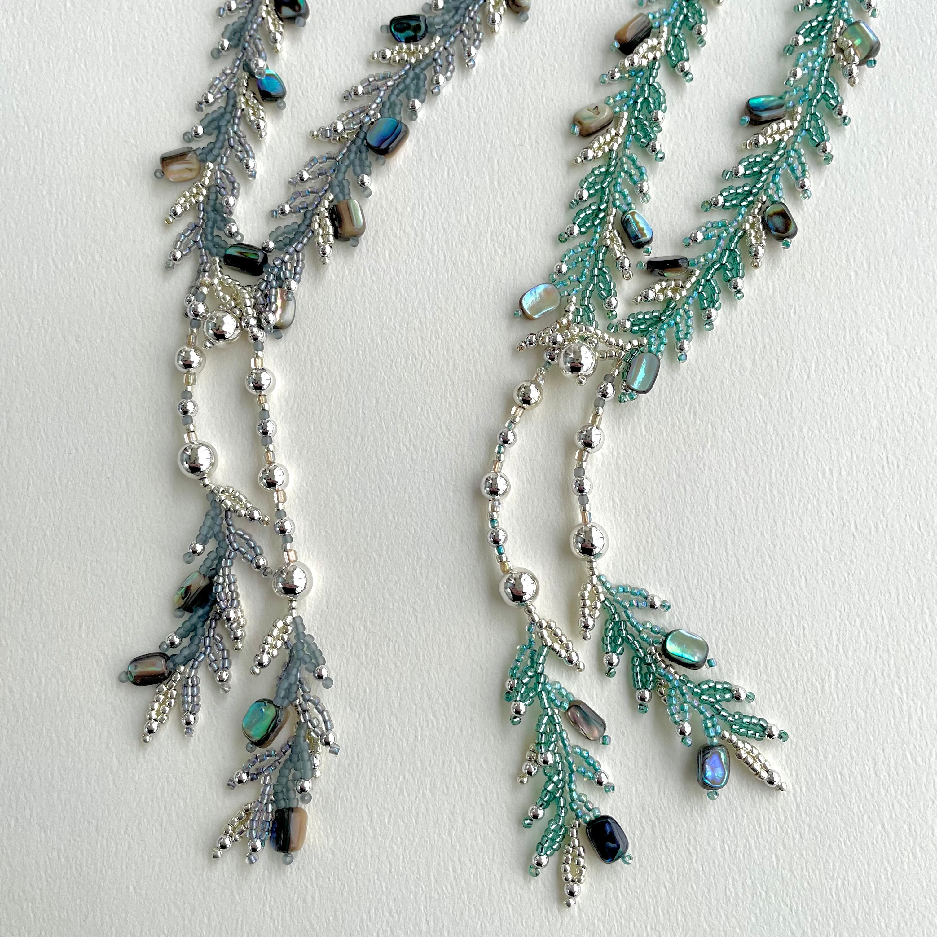 小さなリーフが集まったラリエット風ネックレス。前に留め具があるのでラリエットのようにずれません。