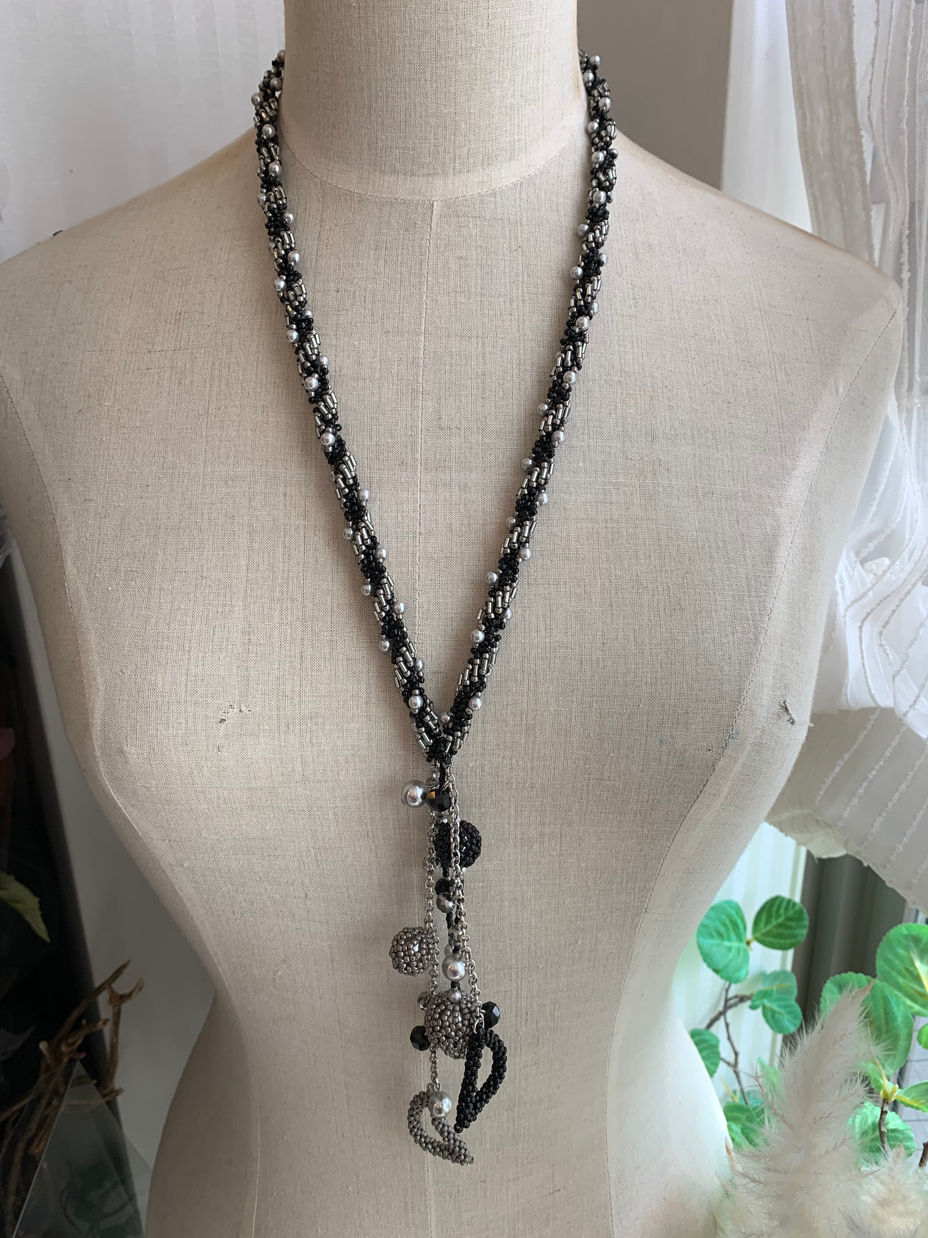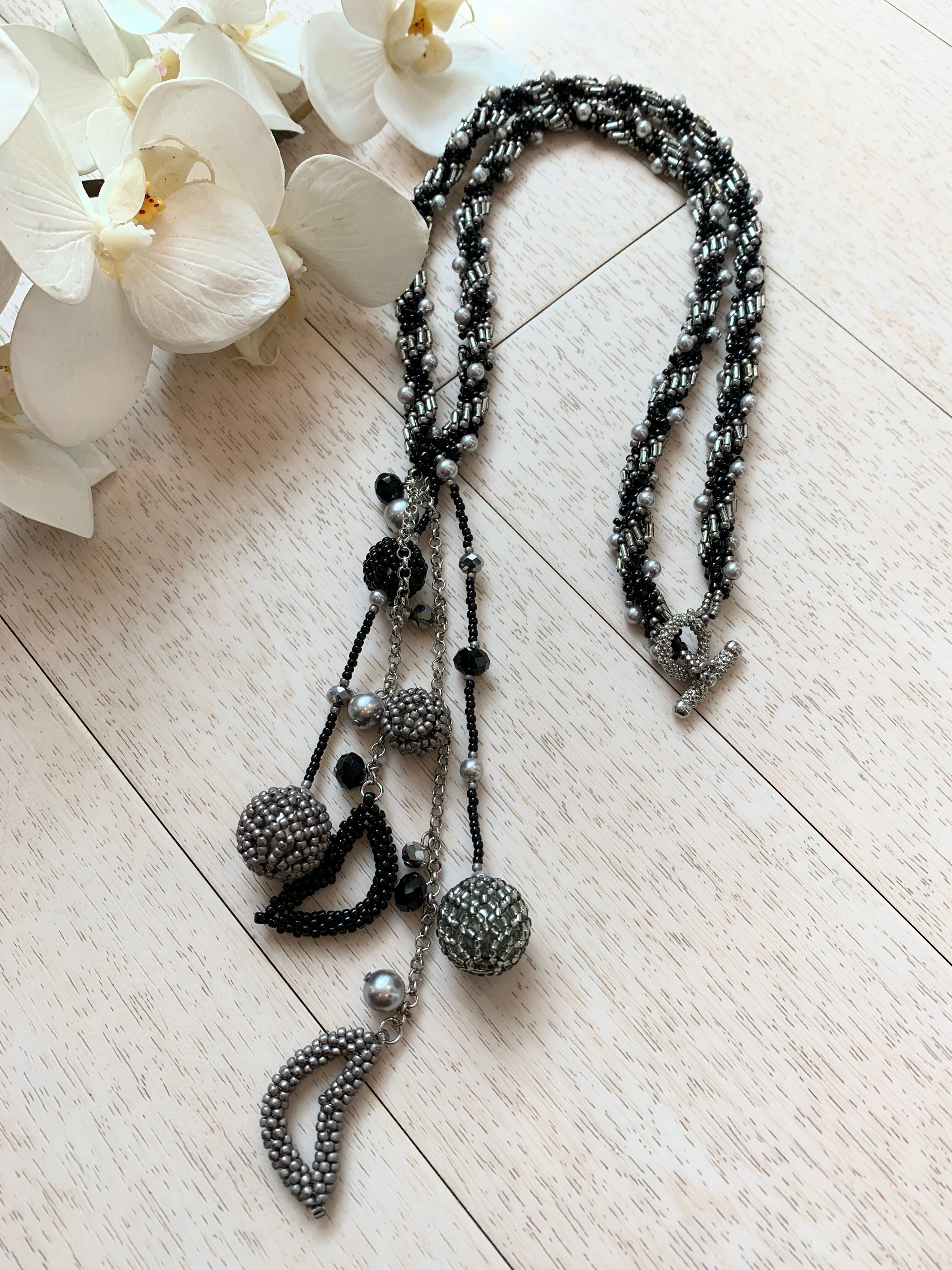 説明:スパイラルロープアレンジ、ペヨーテステッチ、ネッティングのテクニックを使用しています。