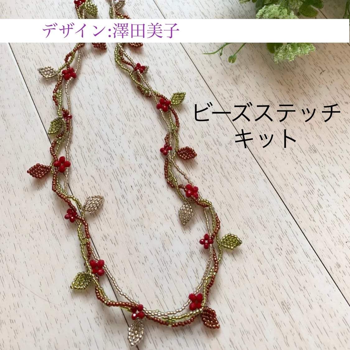 説明:リーフパーツをペヨーテステッチ、キャップもペヨーテステッチをチューブ状に編みます。