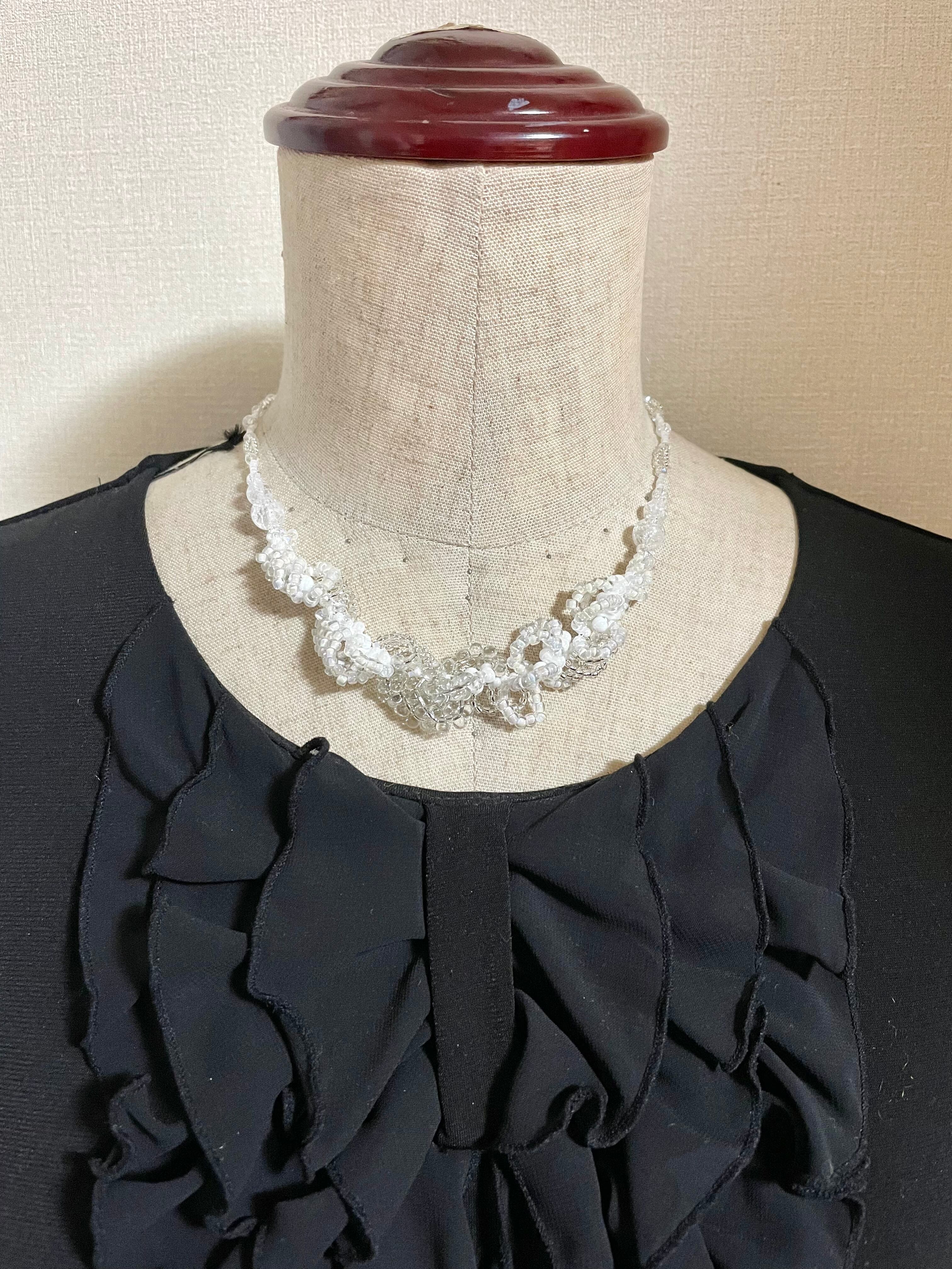 ビーズステッチで編んだ、水晶をたっぷり使ったネックレス。
