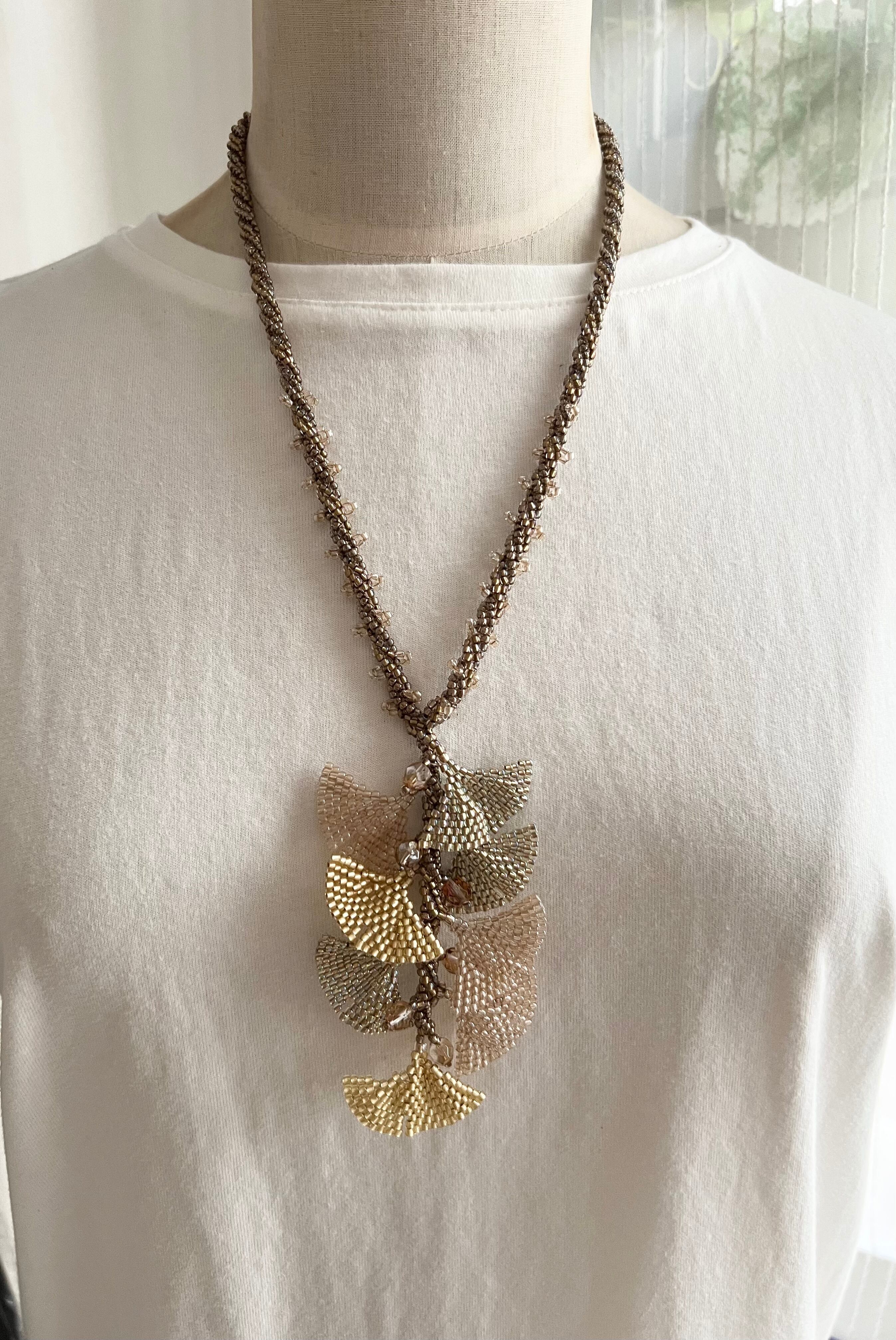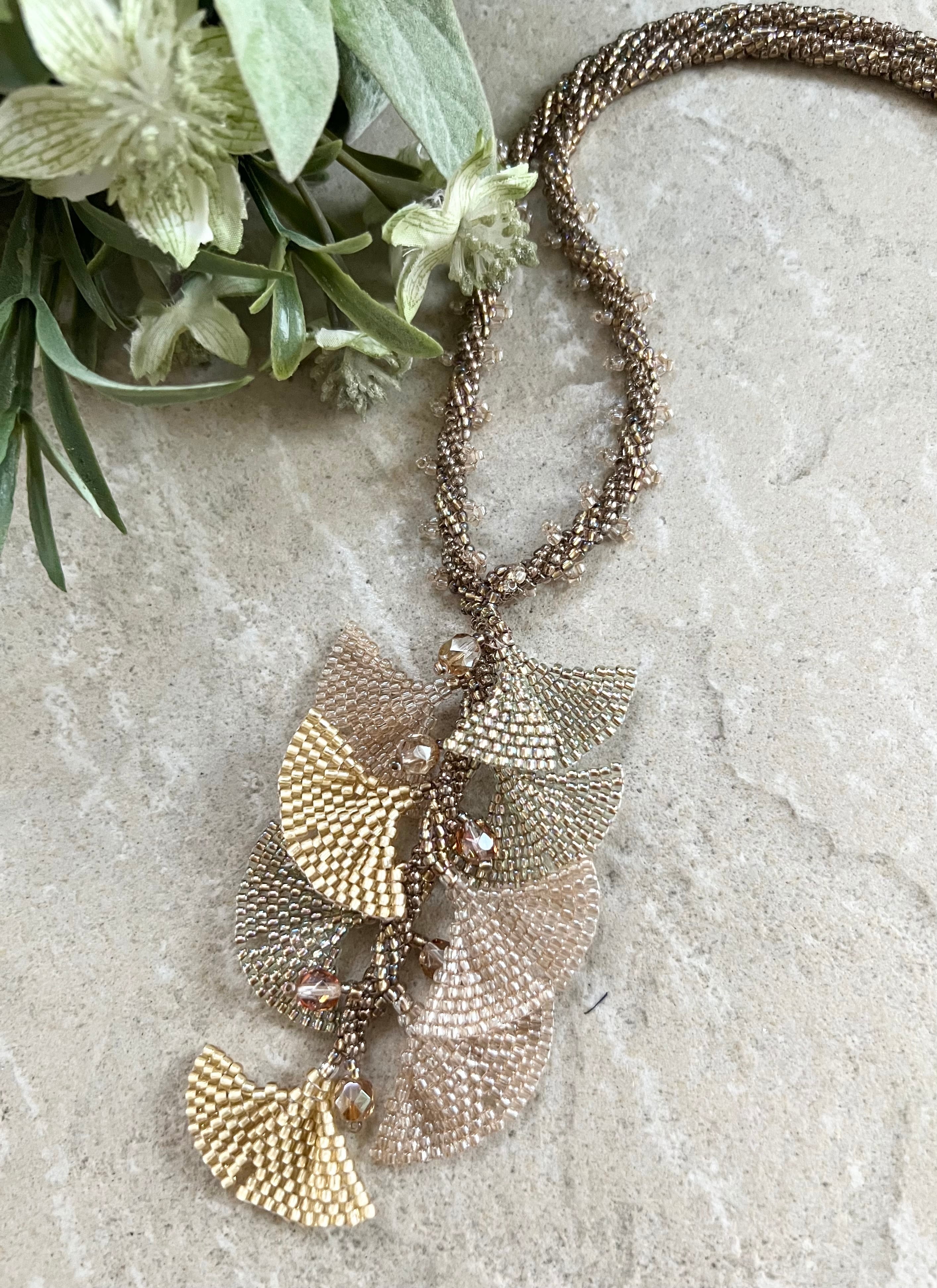 イチョウのモチーフをビーズで表現したネックレスのキットです。